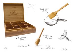 Our premiums are made of FSC bamboo (spatula, honey spoon and tea box) and organic cotton (apron & shopper). This way we try to contribute to a sustainable world. Decrease plastic waste.